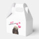 A favour box which says: Happy Valentine's Day with an image of a cute otter with hearts floating upward. The hearts are pink and chubby-looking with a shiny reflection.This otter is quite adorable with his paws resting under his furry little chin. His fur looks wet from hanging out in the water.