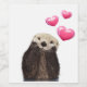 Bottle labels with an image of a cute otter with hearts floating upward. The hearts are pink and chubby-looking with a shiny reflection.This otter is quite adorable with his paws resting under his furry little chin. His fur looks wet from hanging out in the water.