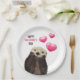 Paper plates with an image of a cute otter with hearts floating upward. The hearts are pink and chubby-looking with a shiny reflection.This otter is quite adorable with his paws resting under his furry little chin. His fur looks wet from hanging out in the water.