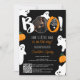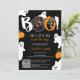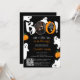 Celebrate the upcoming arrival of your little one with this adorable Halloween-themed baby shower invitation! The design features a playful black background adorned with cute ghost illustrations, an orange pumpkin, and a bold "BOO!" headline in a whimsical font. At the top, there's a spot for a customisable photo, adding a personal touch to the invitation. The invitation reads, "Our Little Boo is on the way!" with A handy QR code at the bottom makes it easy for guests to get more details and RSVP. Perfect for a Halloween-themed baby shower, this invitation combines festive elements with charming illustrations graphics, ensuring a delightful and memorable event for everyone involved.