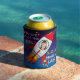 Cute Outer Space Rocket Ship Blast Off Birthday Can Cooler