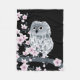 Cute Owl and Cherry Blossoms Pink Black Fleece Blanket