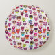 Cute owl background pattern for kids round cushion