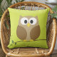 Cute Owl Cartoon on branch with Pattern on back Cushion