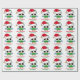 Adorable animal Christmas gift wrap featuring a beautiful big-eyed owl in green and red wearing a Santa hat. Cute custom holiday wrapping paper.