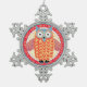 Cute Owl Colourful Christmas Snowflake Pewter Christmas Ornament