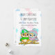 Adorable hand drawn him and her owls, sitting on a tree branch in the winter with pretty pink, blue and teal snowflakes background. Add your custom greeting and names in the personalise area.