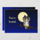 As the invitation depicts, it is getting dark / late as the sky turns from a deep blue to black. The full moon silhouettes the spooky critter sent as a messenger with your invitation.