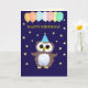 Cute Owl & Editable Birthday Wishes on Navy Blue Card