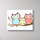 Cute Owl Family. Baby owl sitting on the branch of a tree with mama owl and daddy owl. Graphics by Trina clark