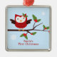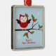 Simple adorable illustration of a brown owl wearing a red scarf perched on a tree on a light blue background. Personalise with your name, monogram, initials, date or text of choice. Perfect as a birthday gift, baby keepsake, nursery decor ornament, etc