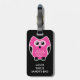 Here's a cute and funny luggage tag with a pink owl on a black background colour that you can change along with name drop monogram you can personalise and make your own. Replace the template name with your own name or monogram initials displayed on both sides.