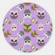 Cute Owl Illustration Pattern on Purple Background Classic Round Sticker