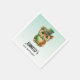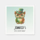 Paper napkins with a wonderful whimsical illustration. A big eyed brown owl wearing a fancy green top hat and bow tie.