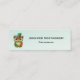 Mini business cards with a wonderful whimsical illustration. A big eyed brown owl wearing a fancy green top hat and bow tie.