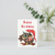 Cute Owl In Christmas Hat and Gift Birthday Card