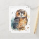 Cute owl in watercolor postcard