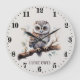 Wall Clock, 25.4 cm Round Black Wooden Frame