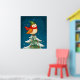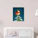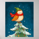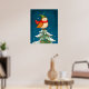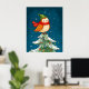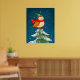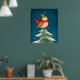 Cute little Christmas owl on a snowy Christmas tree poster print wall art design.
