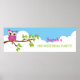 Cute Owl on Branch Girl Birthday Party Banner Poster