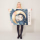 This cute owl is happy to drift off to sleep on this cosy blanket. Pictured sitting on a crescent moon, the sleeping owl is surrounded by pastel clouds and stars in the dark blue night sky. Personalise with a name for the finishing touch.