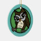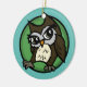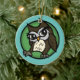 Cute Owl illustration round circle ceramic Christmas Holiday ornament. Front and back background colour as well as text can be customised.