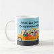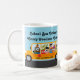 A yellow school bus with an owl bus driver and school kid passengers. The text reads School Bus Drivers Carry Precious Cargo, however you can personalise it with your own text. You can also add the name of the school on the bus. These mugs make fun thank you appreciation gifts for bus drivers.