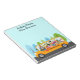 A yellow school bus with an owl driver and student passengers. They driving down a street lined with cute whimsical blue and green trees. Personalise this note pad for a bus driver, teacher, educator or school employee. You can also add the school name on the bus.