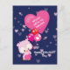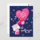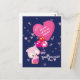 An adorable little pink owl carries valentine balloons in front of a big pink heart. The white text on the heart says "Whoooo will be my Valentine", and the text below says "Happy Valentine's Day". All the text can be easily customised to say anything you'd like. The images and text are placed on a navy blue background with soft pink floating hearts. *Thanks to Pretty Graphic Design for the images used in this design.