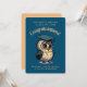 Celebrate your big achievement with this adorable Graduation Party Card, designed in a fun, cartoon style perfect for kids! Featuring a cute, wise owl in a simple modern design, this card is set against a navy blue background, adding a touch of charm. The back is a light orange with pastel grey polka dots, creating a playful and cheerful vibe. Best of all, all the text is customisable, so you can make it your own with a personal message!