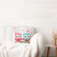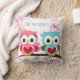 Cute boy and girl owls & flowers throw pillow in pink, blue and white. Front says "Owl you need is love". Back says "love is owl you need". Original art KL Stock.