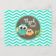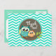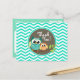 Cute, custom owls themed baby shower design on aqua green; turquoise and white chevron stripes pattern. Features teal mummy owl with orange baby on branch with leaves. Neutral baby shower or baby sprinkle design for baby boy or girl that you can personalise. Visit our store, Favours and Decor, for many more great party gifts and decorations for goody bag stuffers and funny decor. Thank you!