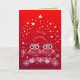 This card has a design with two cute little owls decorated with lots of stars. Around are decorative snowflakes, more stars and snow dots. The colours are red, pink and white. The text Merry Christmas is part of the design. This card can be customised by adding more text. It is also possible to change the inside card background colours with the edit / (advabced) mackground function.