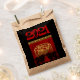 In a square are 2 black Oxen, placed under a golden shape inside of which is the third ox with ideogram. Behind the scene there is a red background on which decorative and ornate letters form the words: OX YEAR. Design on kraft favour bag with large 2021 on black background. Matching greeting card, holiday postcard and more... Perfect for Chinese New Year of the Ox 2021 or birthday (people born in Ox Year).