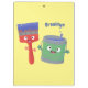 Cute paintbrush and paint cartoon characters clipboard