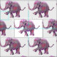 This beautiful fabric features a pattern of a hand painted cute grey and pink little baby elephant with a playfully lifted trunk and foot.