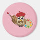 Cute Painter Owl Cartoon Magnet