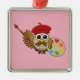 Cute Painter Owl Cartoon Metal Tree Decoration