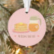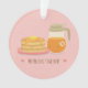 A pink ornament with a cute doodle of pancakes and maple syrup, the food pairing that is perfect together. Text reads "We are perfect together!" with two hearts.