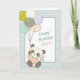 On the front of this pretty birthday card is a little black and white panda bear who is being carried away by colourful pastel balloons. The teal and dusty pink text inside a pattern frame says "Happy Birthday (name)". Inside the text says "Have a BEARY wonderful day". There's another image of the bunny with the balloons and pink flowers at the bottom. All the text is easily customised to anything you'd like.