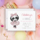 Baby girl 1st birthday party invitation with a cute panda bear ballerina dancer wearing a pink tutu and bow. Contact us for help with customisation or to request matching products.