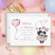 Baby girl 1st birthday invitation with an adorable pink panda bear ballerina wearing a pink tutu. A pink balloon floating nearby has the number 1, which is customisable no matter what age your child is turning. Contact us for help with customisation or to request matching products.