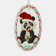 Here's a cute Christmas ornament for any grandchild who loves panda bears. A wide eyed black and white panda holds a candy cane and wears a Santa hat. Below the image is your special child's name in green. The image is framed with a pretty red, green, and white candy cane stripe pattern. The back of the ornament has the same striped frame, and more text fields for you to customize.