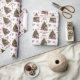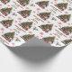 The repeated pattern on this Christmas wrapping paper includes an image of an adorable little panda bear wearing a red and white Santa hat and sweater. He is ready to open all the gift packages in front of a decorated Holiday tree. Red and green text says MERRY CHRISTMAS", with your child's name and your signature below. Other images included in the pattern include red decorative snowflakes and candy canes tied with a bow.