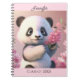 Cute Panda Bear Pink Flowers Personalise Name Gift Notebook