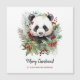 Cute Panda Bear Rustic Christmas botanicals card. Rustic watercolors and lineart style black and white panda bear with beautiful winter botanicals. Personalised text with a lovely trendy script.