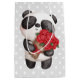 Gift bag with an adorable watercolor drawing. An adorable black and white panda bear carrying a bouquet of roses.