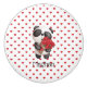 Adorable black and white panda bear is holding a bouquet of roses. Background is white with tiny red hearts. Personalise with your baby girl's name. There are other coordinating knobs in my shop so you can mix and match for fun too!