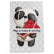 Happy Valentine's Day gift bag with an adorable watercolor drawing. An adorable black and white panda bear carrying a bouquet of roses.