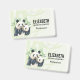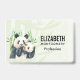 Name badge with a cute watercolor illustration featuring a black and white mum and baby panda bear cuddling together. Mummy is holding her cub amongst some green bamboo stalks.